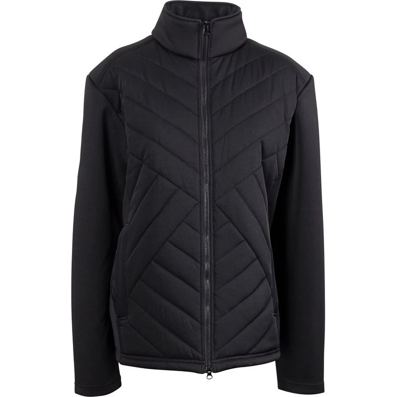 Gorgeous classic riding jacket in water and wind resistant quick-dry fabric. Quilted body combined with softshell sleeves provides warmth without bulk for freedom of movement.