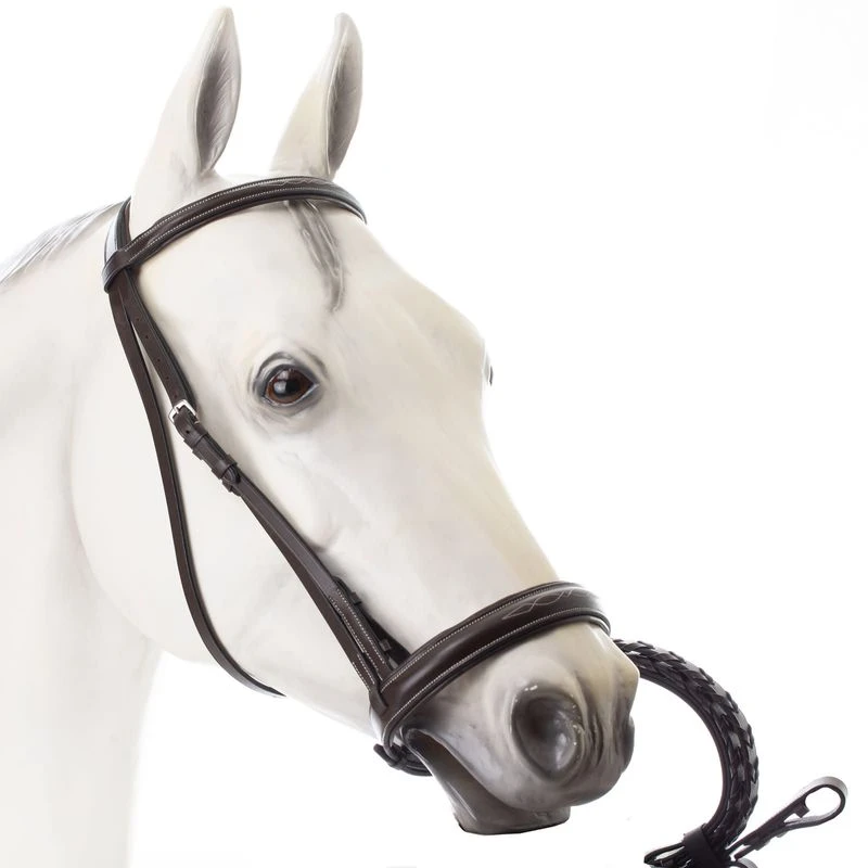 This bridle has a raised padded fancy stitched noseband is slightly wider than the original Saga, finishing at 1.25″ in the style preferred by many hunter riders