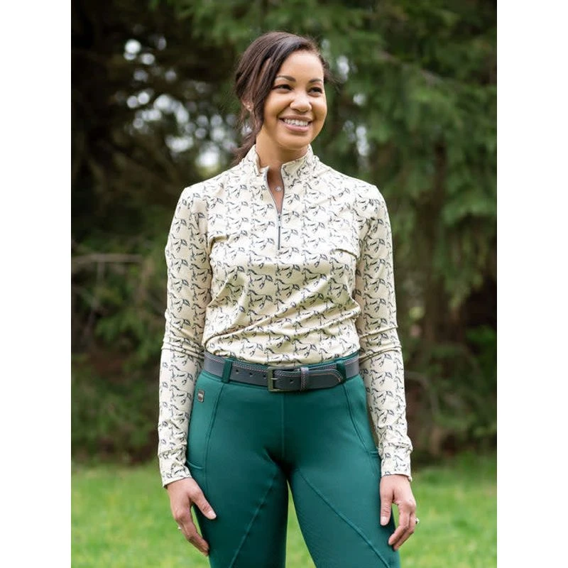 The Arya features a quarter-zip neckline and offers a perfectly polished look for lessons and clinics. This shirt outfits well with FITS winter breeches and quilted vests.