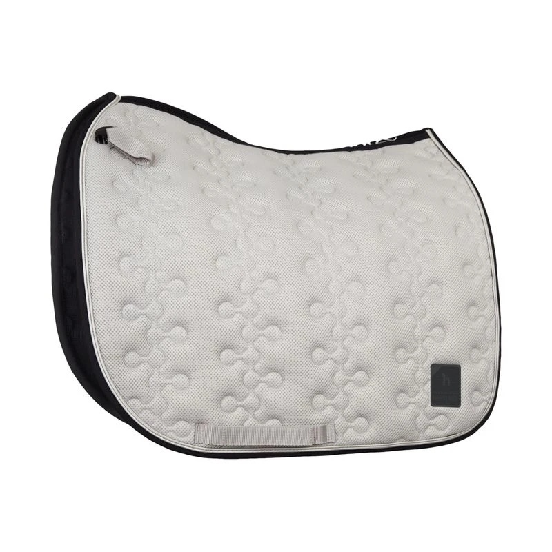Introducing the Smoky Twilight saddle pad crafted from a thick 3D mesh fabric for increased airflow and temperature regulation. While the quilted upperside creates an elegant look, the moisture-wicking lining offers functionality. The design is completed with a fine contrasting rope and branding along the spine, as well as a logo badge.