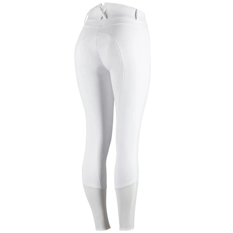 The Horze Women’s Angelina Full Seat Breeches with Silicone Grip are lightweight full seat breeches that are the perfect choice for hot summer days. These riding pants are designed with seams at the front for a slimming effect. A silicone print full seat provides extra grip and security in the saddle. The high waist helps you maintain your correct position with ease. Additional details include convenient front zipper pockets, along with a front zipper and snaps. The Angelina Full Seat Breeches by Horze are made from breathable and quick dry fabric to keep you cool and dry. The mesh fabric at the leg is also breathable to help you stay comfortable under your boots.