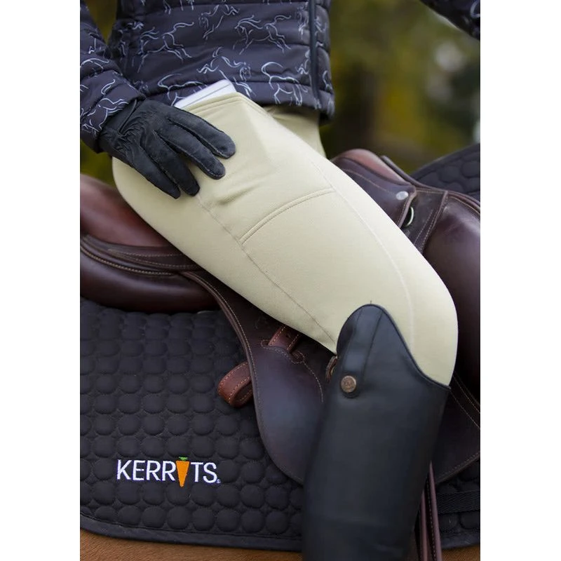 Snuggly fleece inside insulates while the matte exterior leaves hay, dirt, and horsehair at the barn. Kerrits Sticks Silicone adds grip for deliciously cozy tights with supple stick for when frosty temps can make even the most collected lesson ponies prance.
