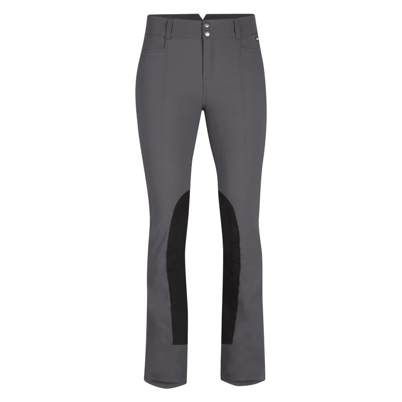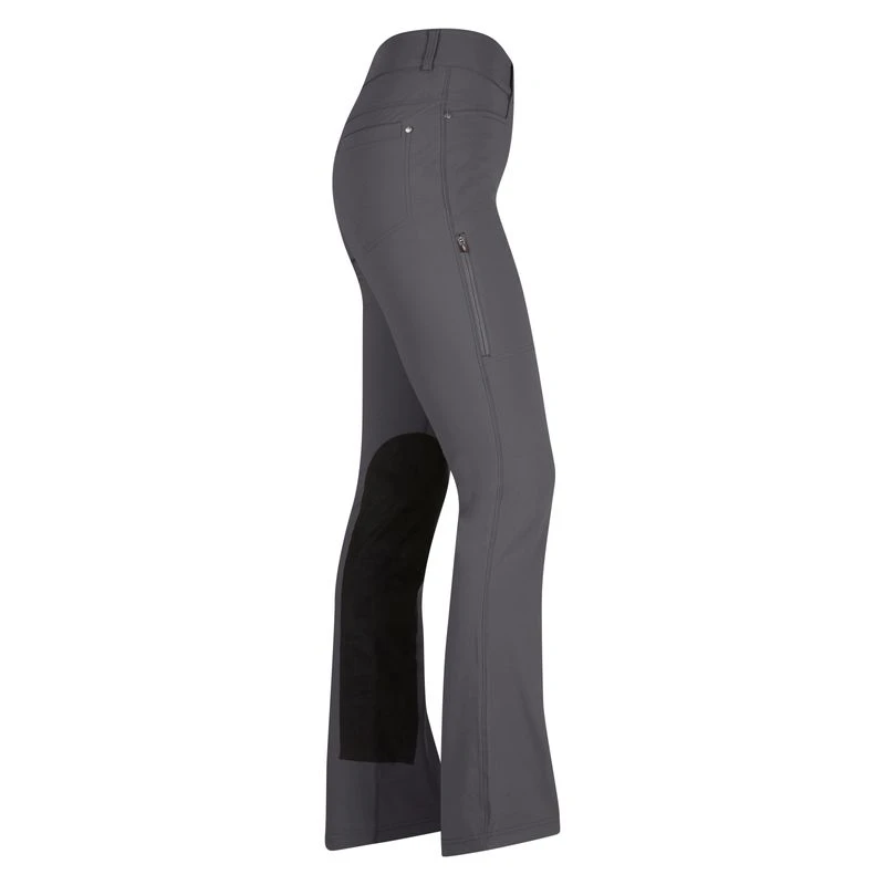 Breathable, four-way stretch Dynamic Extreme fabric sheds dirt and hay with ease, enduring barn chores and trail rides without a scratch. Five handy pockets are strategically placed for in-saddle access: two front slash, one secure zipper pocket on right thigh, and two back ergonomically shaped pockets. For an added boost of confidence, the bootcut styling visually slims hips and lengthens legs. An all-around winner.